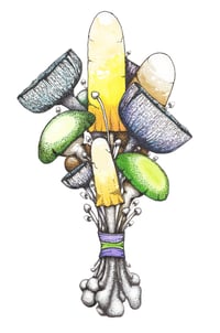 Mushroom Bouquet - Original Art and Prints - ink & watercolor